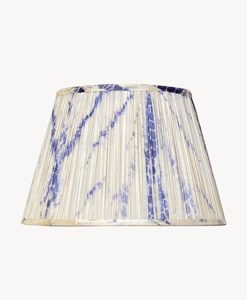 Pleated lampshade with horizontal navy blue and white stripes, set against a plain white background.