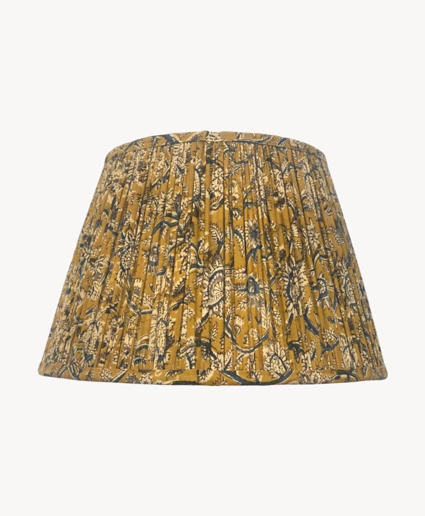 Blue/Yellow Juniper Pleated Lampshade with Blue Trim