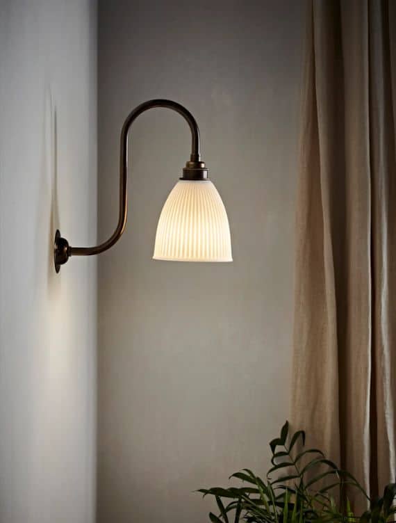 A white ceramic wall-mounted candle holder with a slim, upright taper candle, displayed against a plain white background.