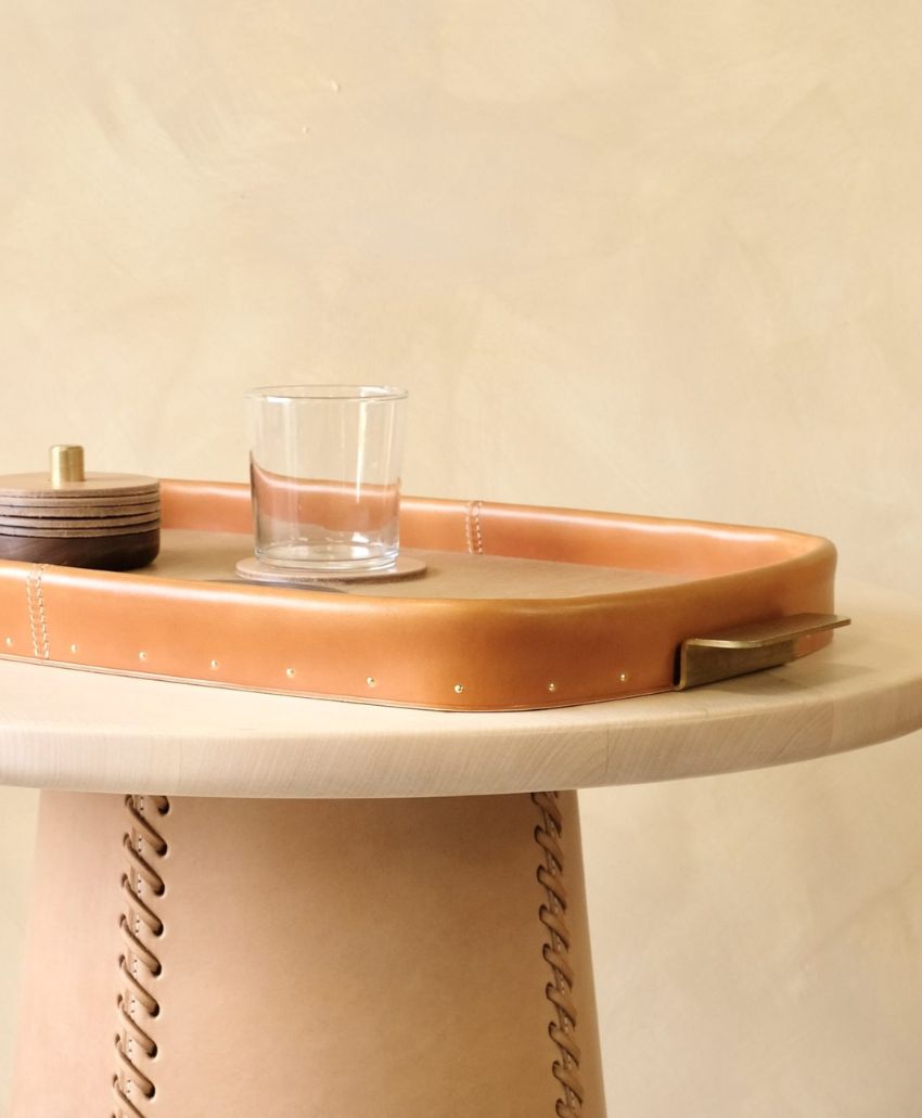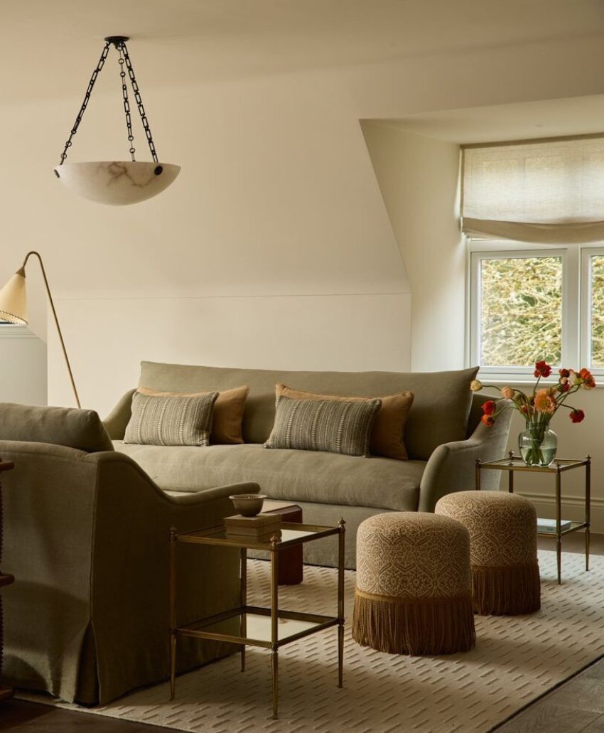 A brown hardcover book titled The Living Room by the Design Leadership Network is shown standing upright. The publishers name, Assouline, appears at the bottom.