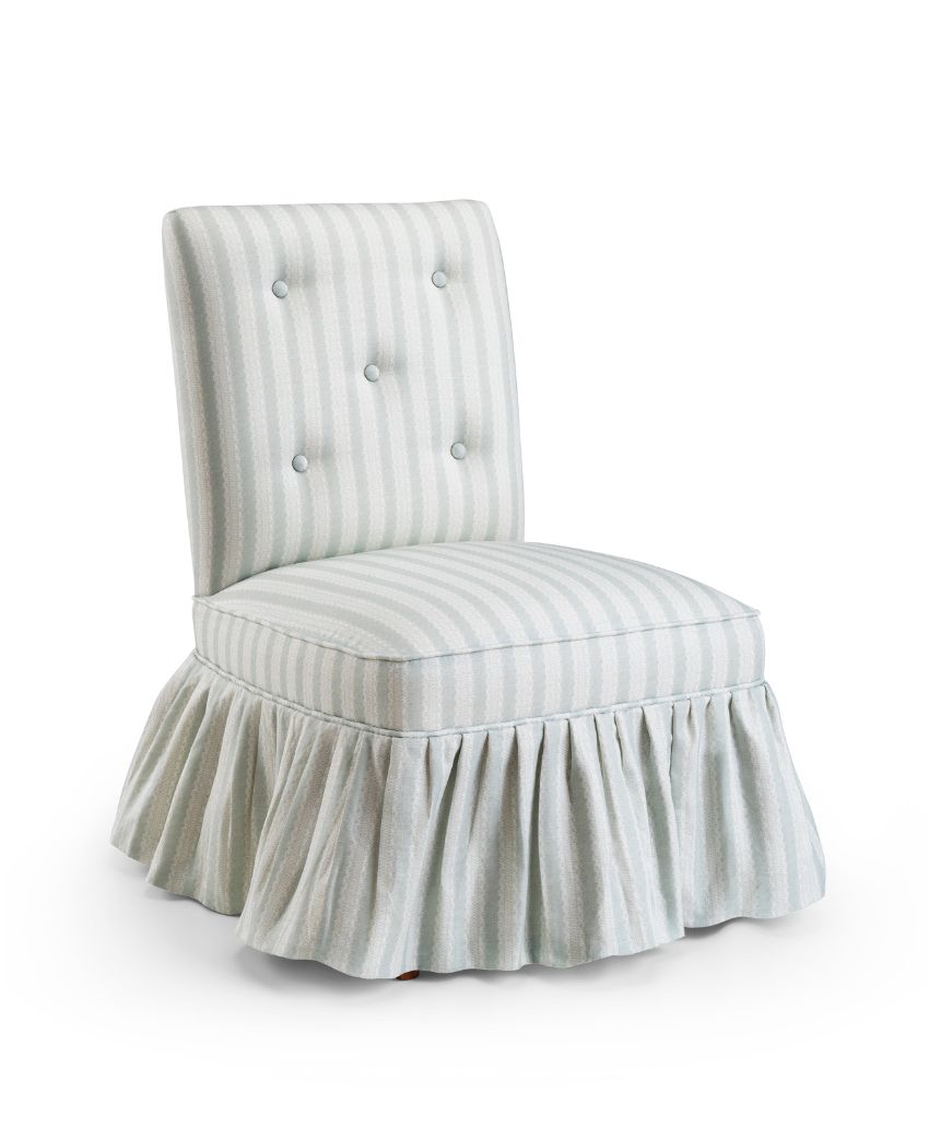 Wooden chair with decorative backrest bars, armrests, and a cushioned seat upholstered in a light green floral-patterned fabric, shown against a plain white background.