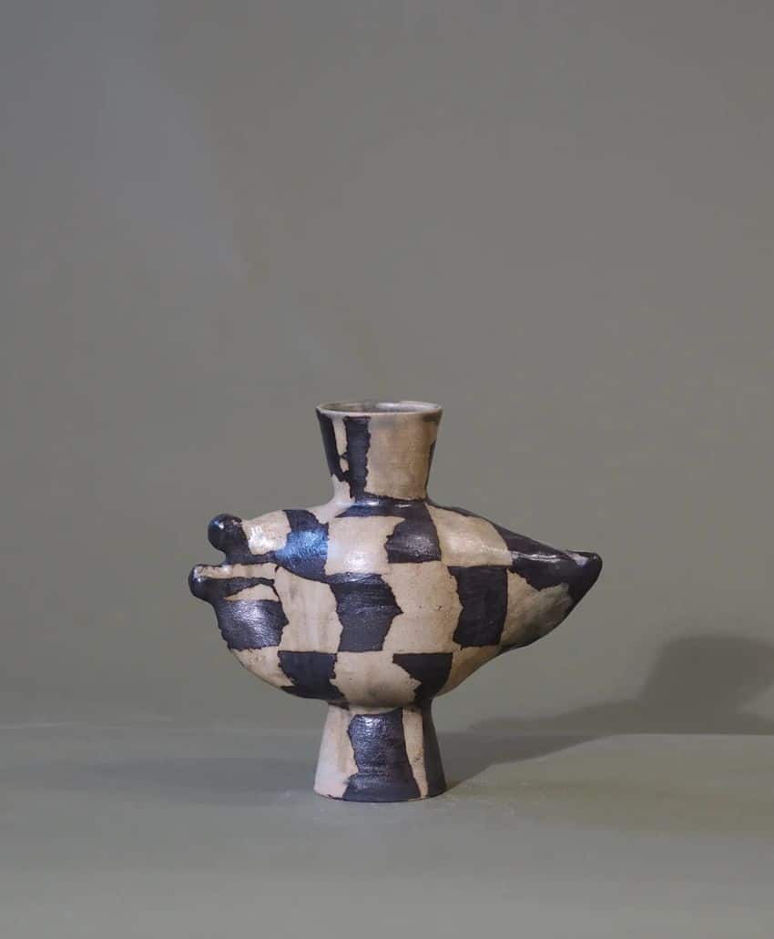 The Peridot Lamp by The Workshop by Studio Peake – also a collaboration with Rupert Merton – is constructed from differently shaped ceramic objects, each hand-thrown and unique, making every lamp a singular work of art. Set it upon the Joyce Chest of Drawers from Pinch, with dark bronze finished pull handles and the quiet, elegant aesthetic of refined craftsmanship.