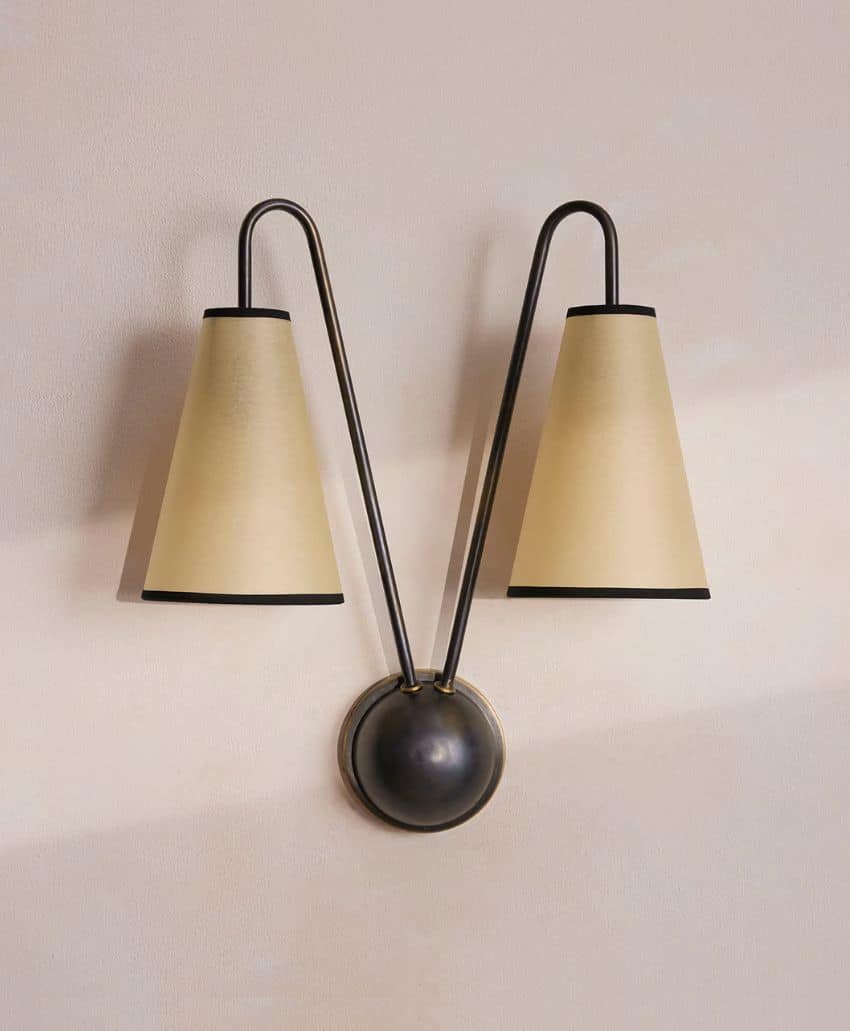 The Blossom Portable Light—Original BTC’s first cordless design—features a fluted bone china shade, inspired by the delicate form of a plum blossom. For scale and grounding, the Ferguson Floor Lamp by Soho Home combines a lacquered oak stem with a scalloped linen shade, echoing the table lamp’s balance of classic form and contemporary finish.